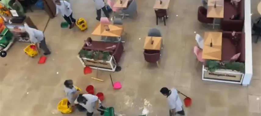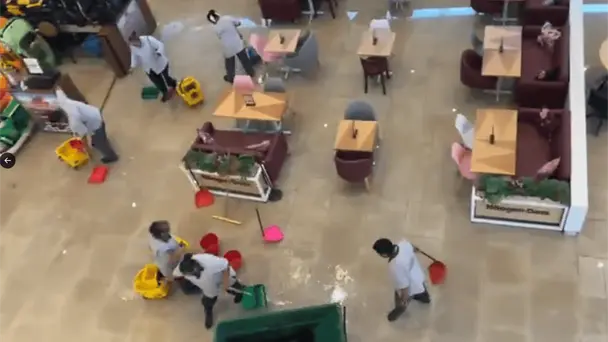 Aunque en un primer momento se habló de un supuesto colapso del techo, momentos después en redes sociales se difundió un video de agua emanando desde el suelo, a un costado de la entrada de Chedraui Selecto.