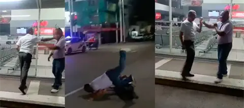 En el clip de 22 segundos se observa como uno de los sujetos le pega un golpe en la cara al otro para después salir corriendo, sin embargo, en su huida tropieza y cae sobre la avenida Francisco Javier Mina, donde afortunadamente no transitaban vehículos.
