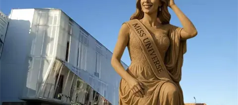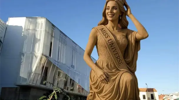 En la escultura, Fátima porta el mismo vestido que lució la noche de su coronación, mientras que a un costado aparece un anfibio en llamas, referencia que los tabasqueños han utilizado tras la polémica generada con Miss Jalisco.