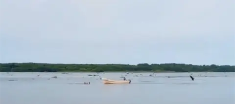 En redes sociales, circularon videos del momento en que, la pareja grita por ayuda y el instante en que son socorridos por un lanchero.