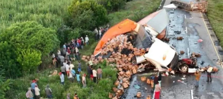 En la zona, automovilistas y pobladores comenzaron a llevarse el producto, pese a que en el lugar se encontraba el cuerpo sin vida de uno de los conductores y la presencia de la Guardia Nacional.