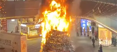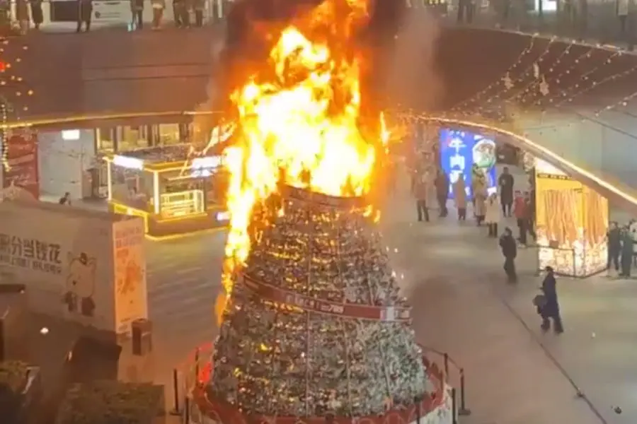 ¿El Grinch atacó?, un video se ha vuelto viral en redes sociales tras captar el momento en que un árbol de Navidad en medio de un centro comercial comenzó a incendiarse, en China.