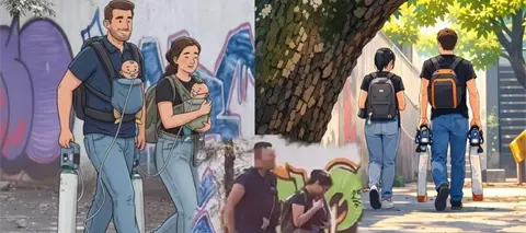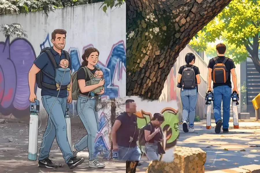 Video de padres que caminando en la CDMX con sus bebés conectados a tanques de Oxígeno conmueve las redes