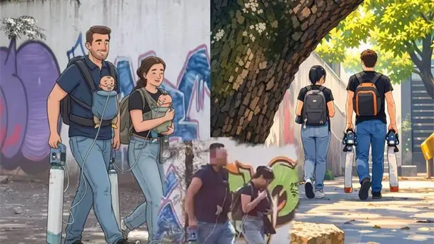 Una joven pareja se hizo viral, luego de que fueran captados en video caminando por las calles de la Ciudad de México, con sus dos bebés, los cuales estaban conectados a tanques de oxígeno.